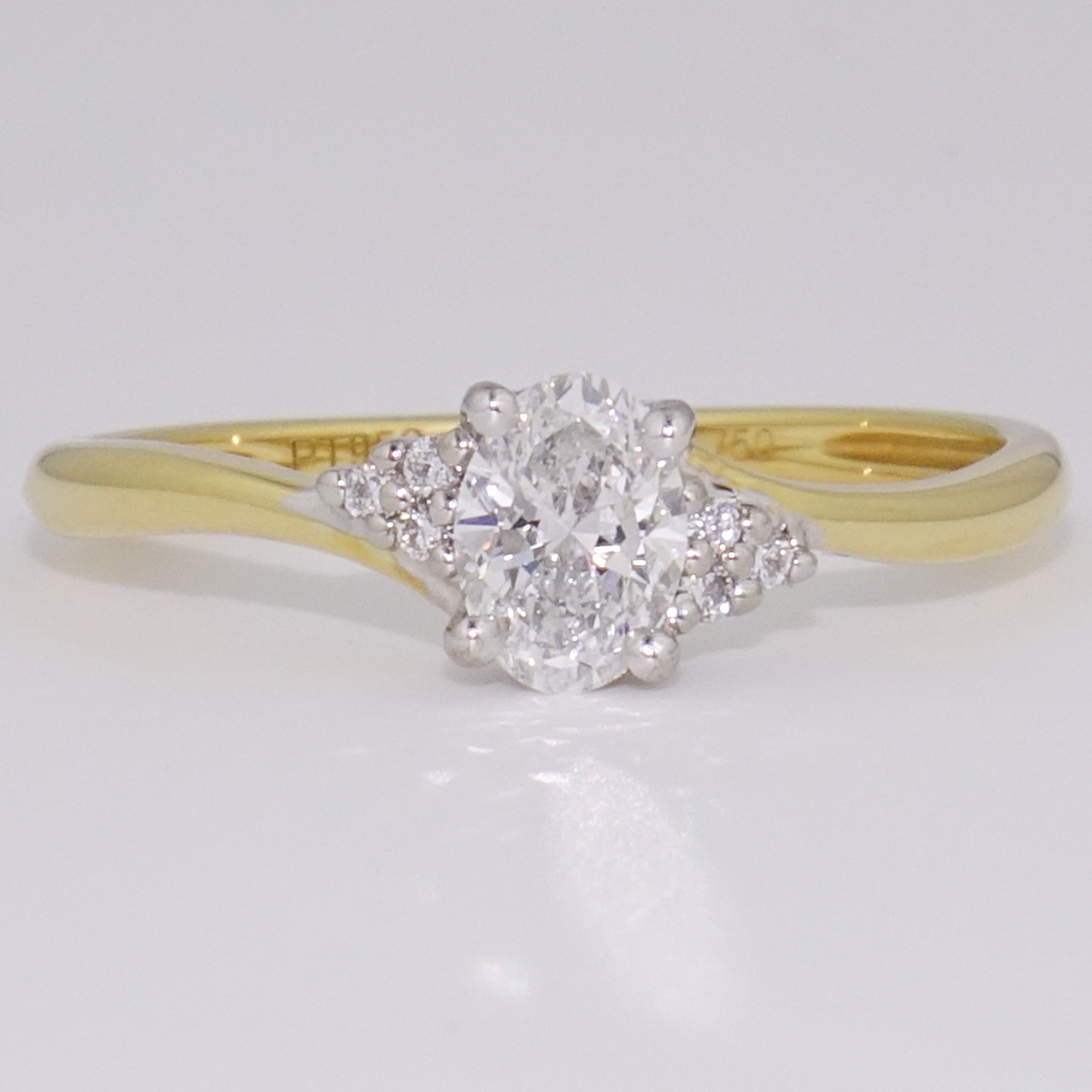 We've set this certificated D colour oval cut diamond with six round brilliant cut diamonds in this fabulous twist ring. D colour diamonds are graded as absolutely colourless, making them incredibly rare.
