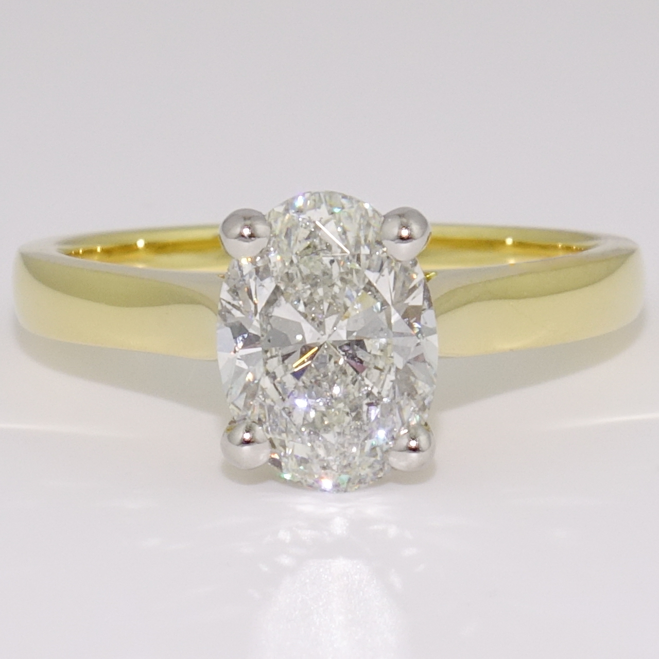 18ct gold and platinum oval cut diamond solitaire ring.