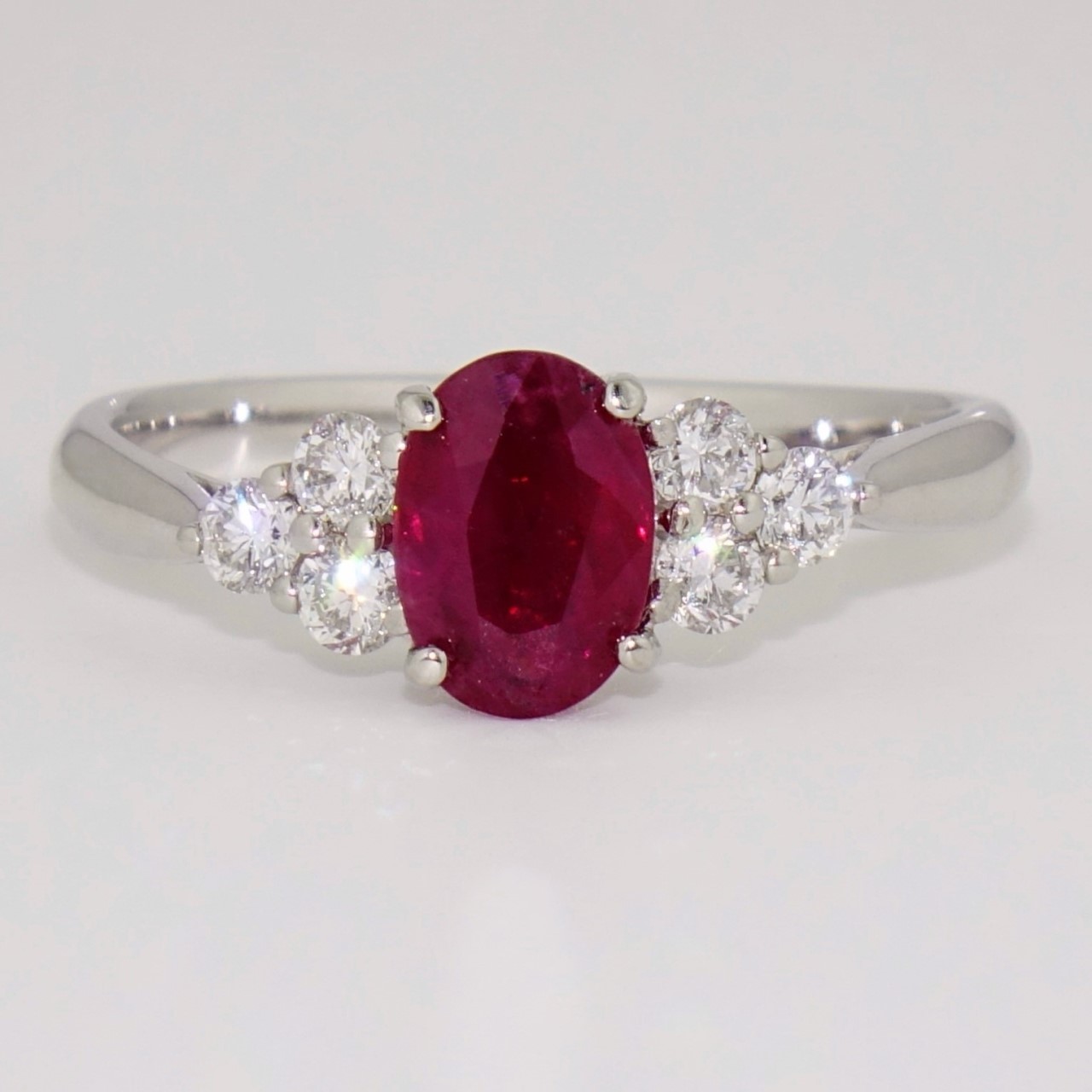We've set this oval cut ruby with six round brilliant cut diamonds in this stunning ring.