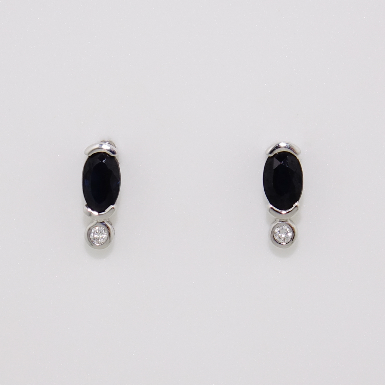 These popular stud earrings feature oval cut sapphires set above round brilliant cut diamonds in rubover settings.