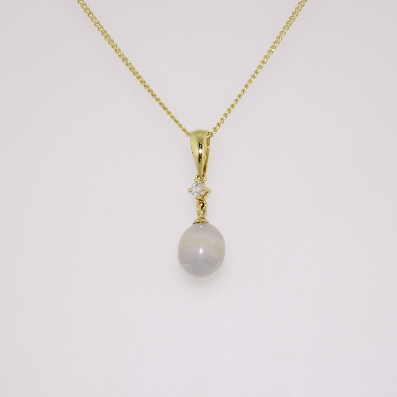 We've set this beautiful Scottish freshwater pearl below a single round brilliant cut diamond in this stunning pendant.