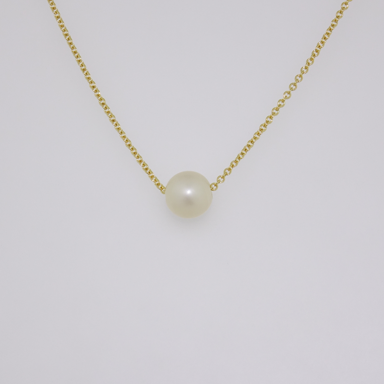 We've threaded this gorgeous Scottish freshwater pearl on an adjustable 16" - 18" trace chain in this stunning necklace. The simple design makes the pearl look like it's floating, and it looks beautiful worn alone or layered with other necklaces.
