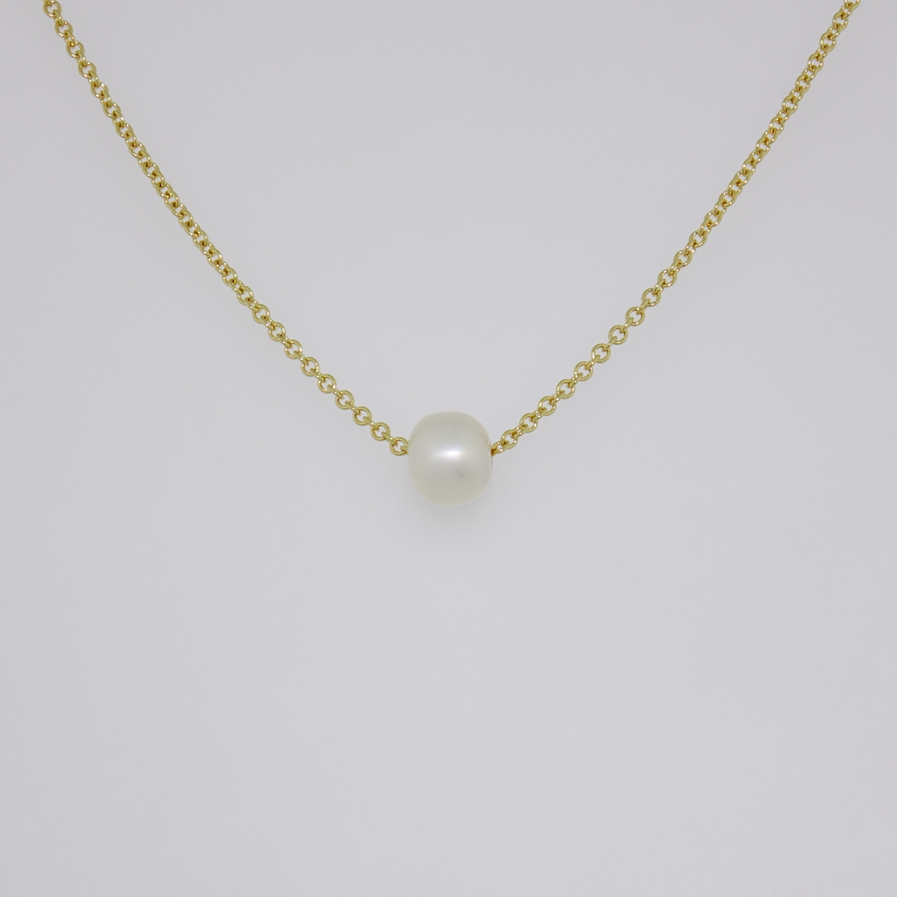We've threaded this gorgeous Scottish freshwater pearl on an adjustable 16" - 18" trace chain in this stunning necklace. The simple design makes the pearl look like it's floating, and it looks beautiful worn alone or layered with other necklaces.