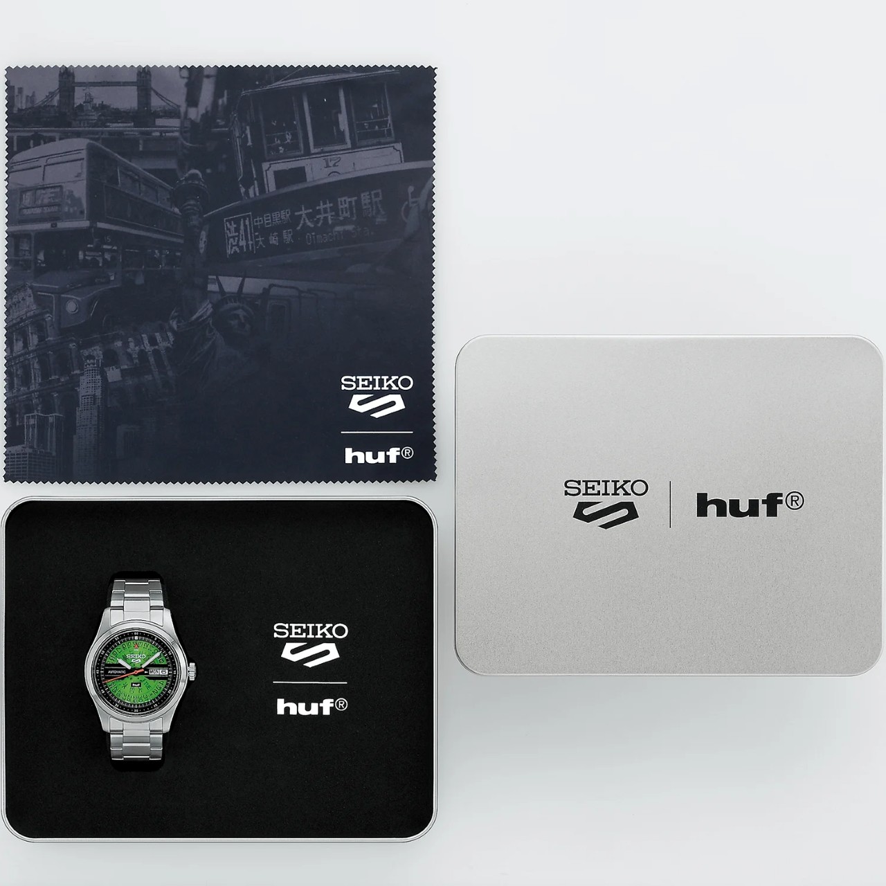 This watch is the second global limited edition collaboration between Seiko 5 Sports and HUF, the popular skateboarding and streetwear fashion and lifestyle brand.