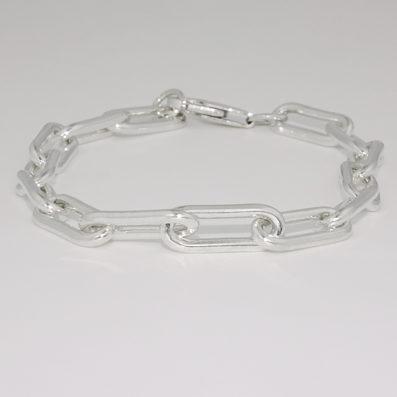 This contemporary bracelet is composed of long sterling silver links, and fastens securely with a trigger clasp.