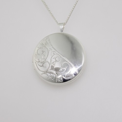T Paterson Add to Cart Silver Locket SLOC80 Now: £159.00 MSRP: Was: Sterling silver round locket. This elegant locket features a half engraved design, and opens to reve…